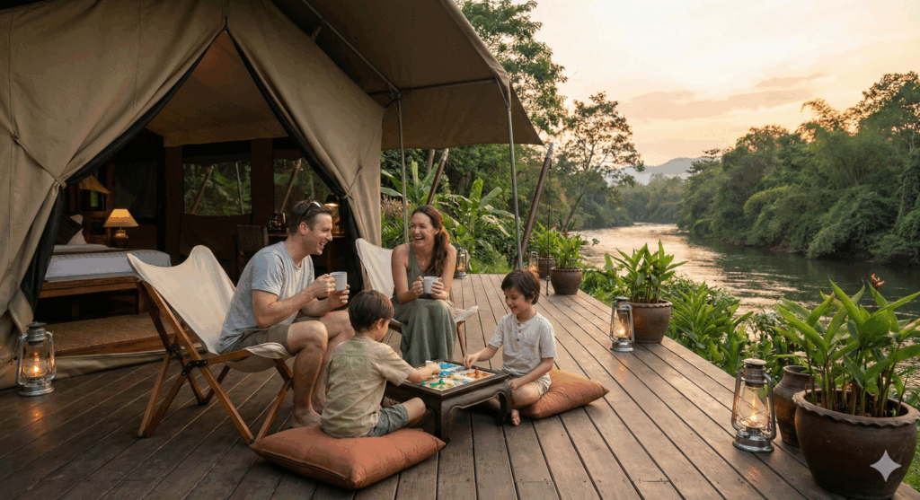 This school break, elevate your family vacation game. Forget the hassle of pitching tents, sleeping on the hard ground, or dealing with shared facilities. Instead, introduce your children to the world of “Glamping” (Glamorous Camping) at one of Thailand’s most prestigious and historic nature resorts: Hintok River Camp @ Hellfire Pass.